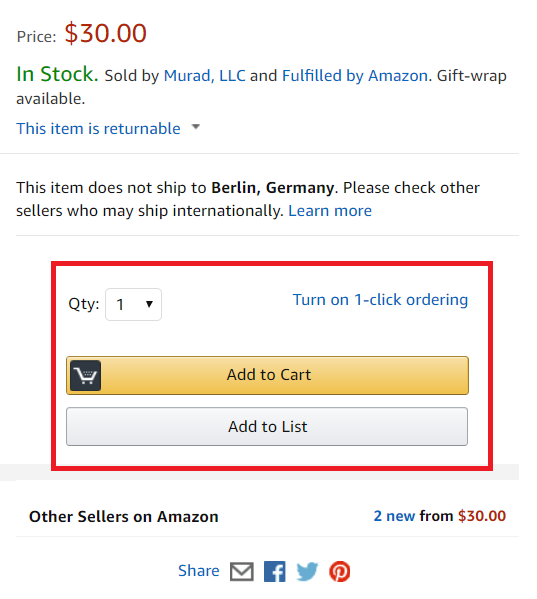 The Buy Box is the box on the top right hand side of the Amazon product page, and includes the all-important call to action ‘Add to cart’.